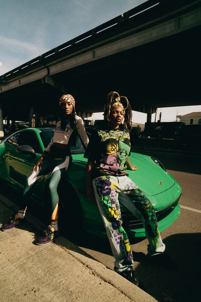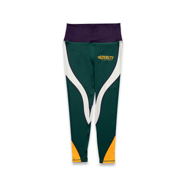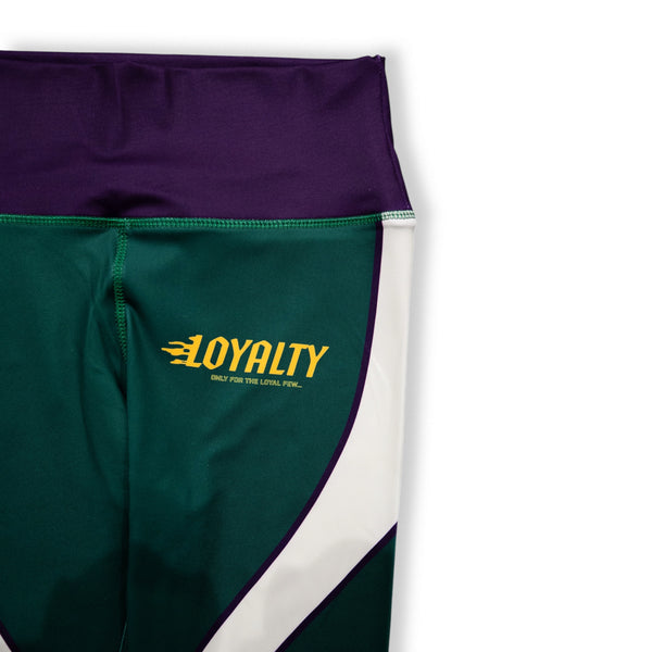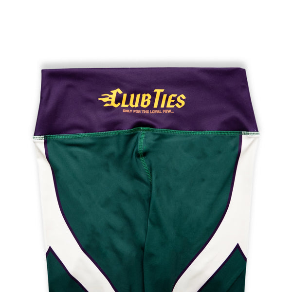 Women's Mardi Gras leggings with sublimation printed Loyalty logos on front & Club Ties logo waist back...